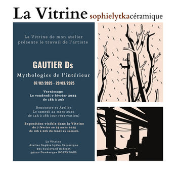 En Février et Mars, j'investis la vitrine de l'atelier de Sophie Lytka à Rosendaël. Il propose une peinture au blanc de Meudon visible depuis la rue. Je ferai également découvrir la pratique du monotype le samedi 22 mars de 14h à 16h. (Nombre de places limitées)